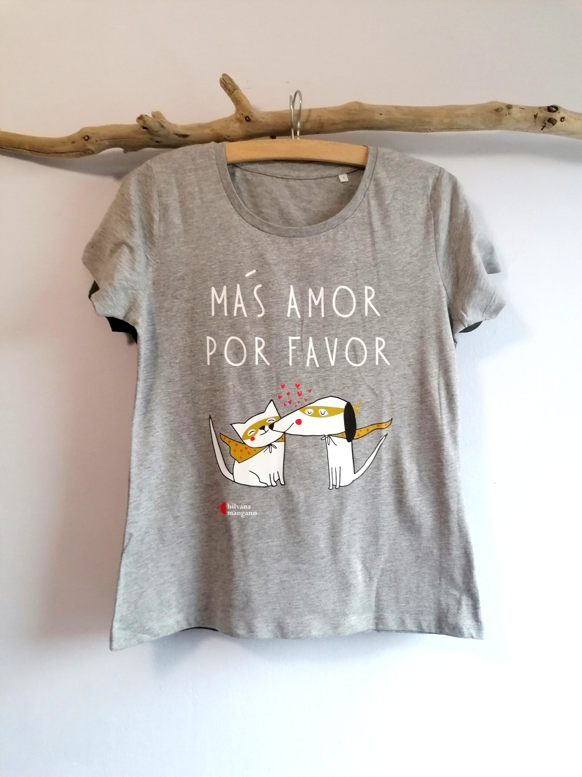 Es una camiseta holgada pero con forma, de algodón orgánico y super agradable, escote redondo amplio.